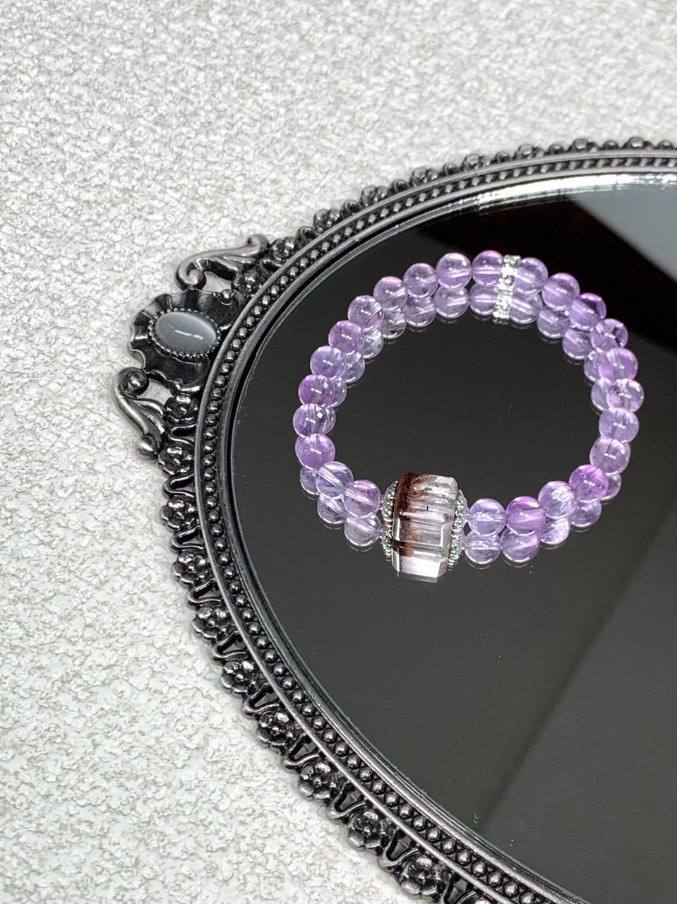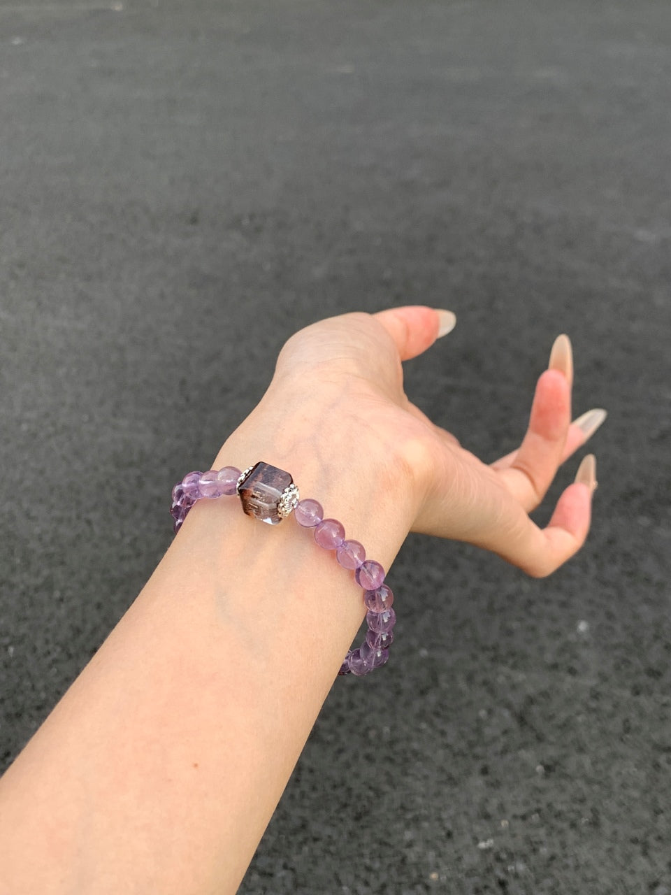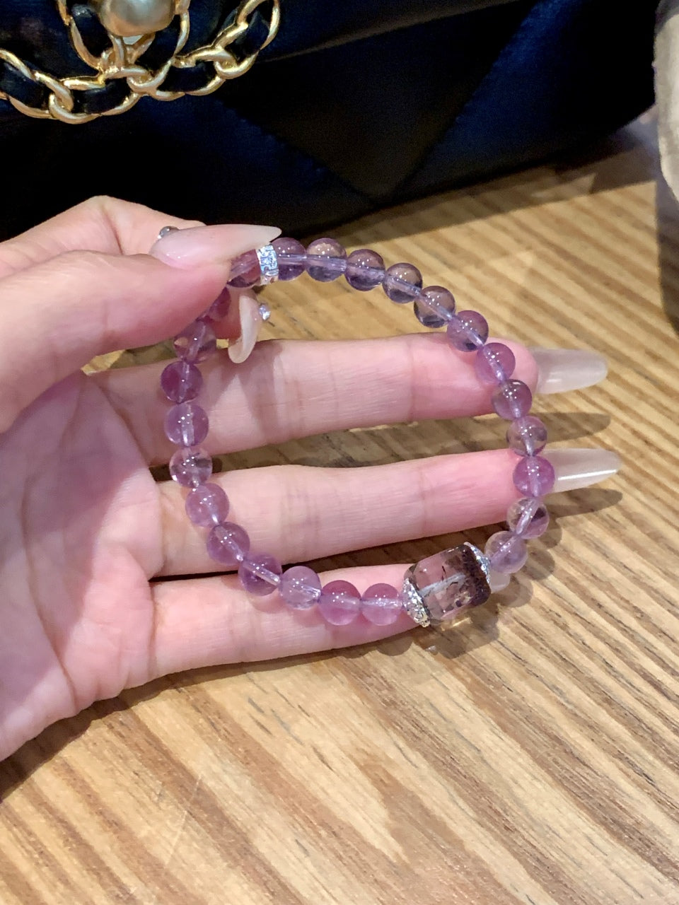 This energy crystal bracelet is crafted from Bolivian purple and Four Seasons ghost sugar cubes. The purple color of Bolivia is like a mysterious dream, and the ghost cubes of the four seasons are like the elves of time. It embodies the power of nature and exudes charm. Wearing it, it feels like stepping into a fantasy realm, feeling the flow of the four seasons and the protection of mysterious energy.