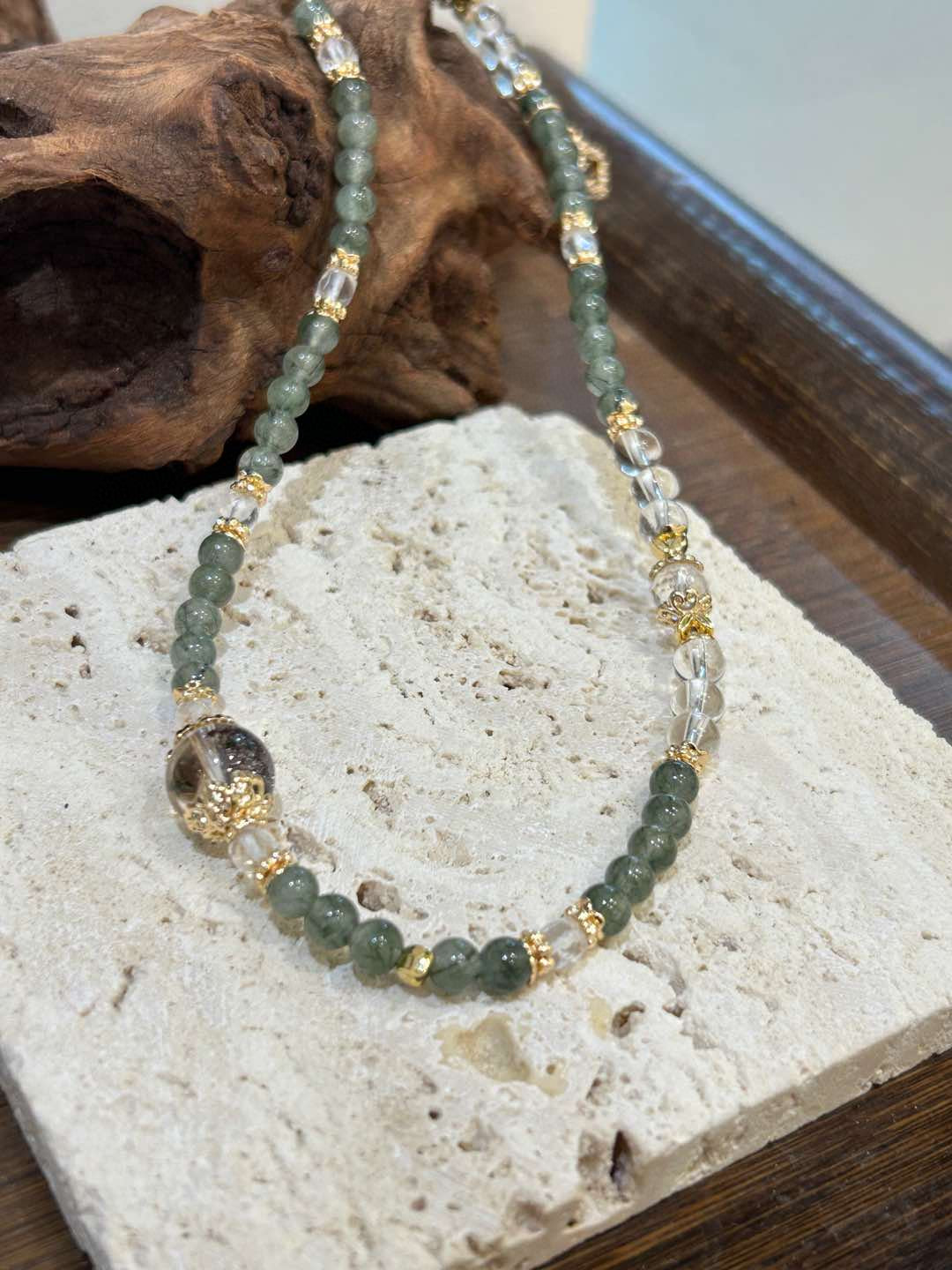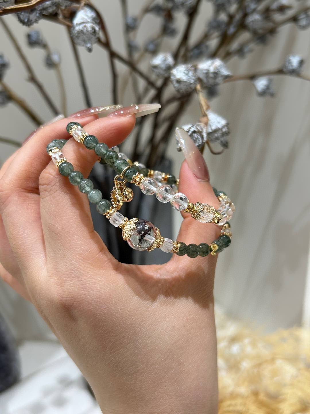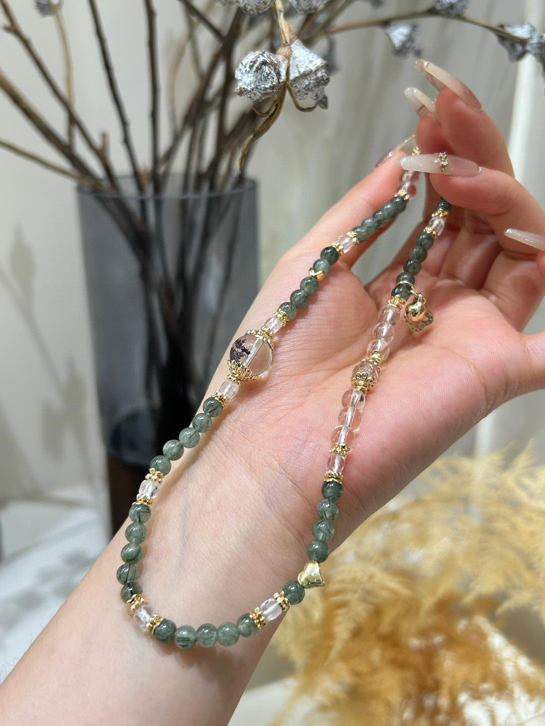 - Material: Natural Green Agate, Clear Quartz, Golden Accents