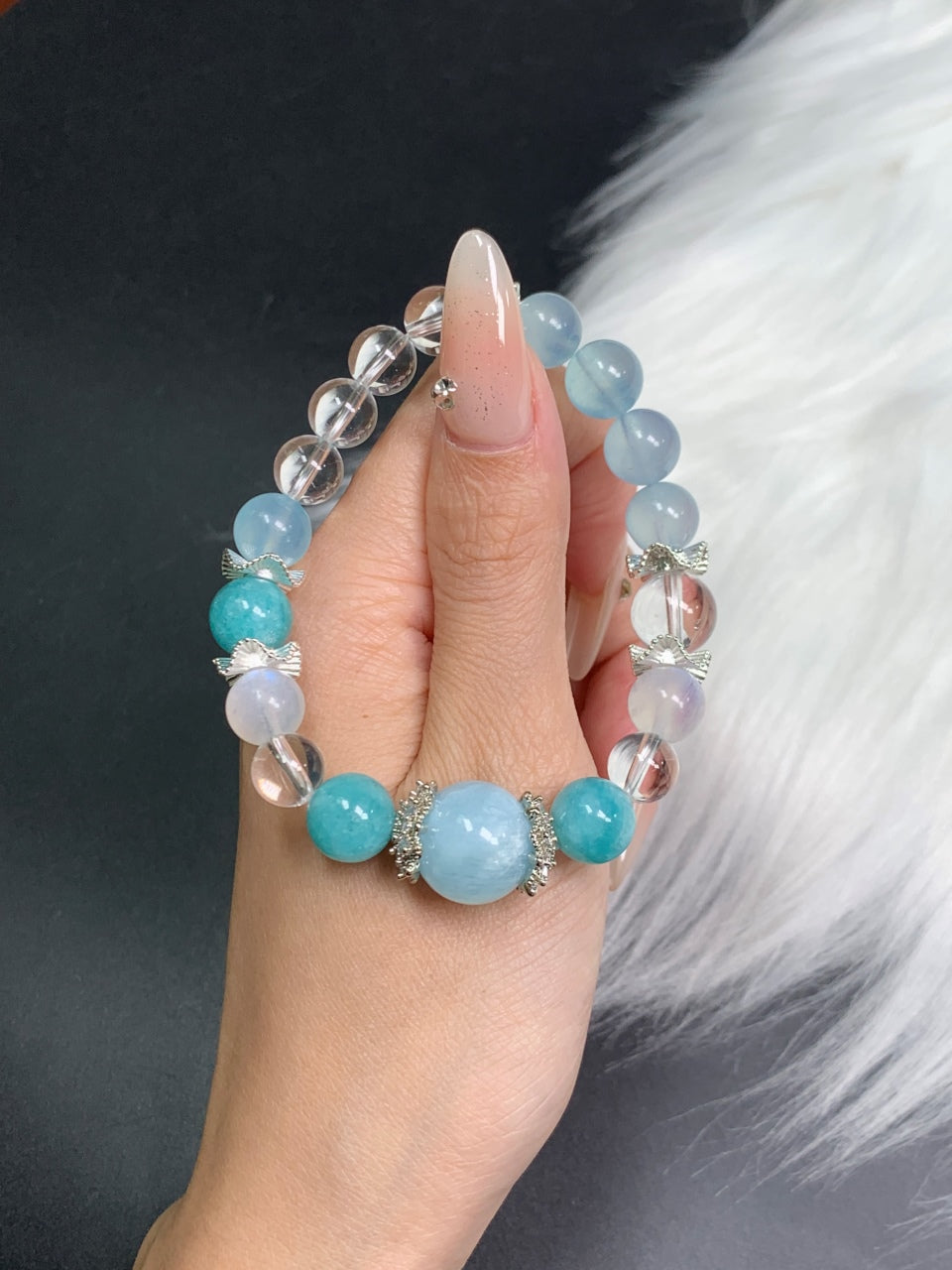 Aquamarine is as deep and blue as the sea. In metaphysics, it is regarded as a helper of communication and expression. It can bring courage and self-confidence, making you feel comfortable in interpersonal relationships. White crystal is pure and transparent, purifying your soul and aura, and injecting you with positive energy. Amazonite exudes a mysterious interweaving light of blue and green, inspiring creativity and adventurous spirit. When you wear it abroad, it seems to be connected to the dynamic power of the ocean, attracting good luck and opportunities, and showing unique charm.