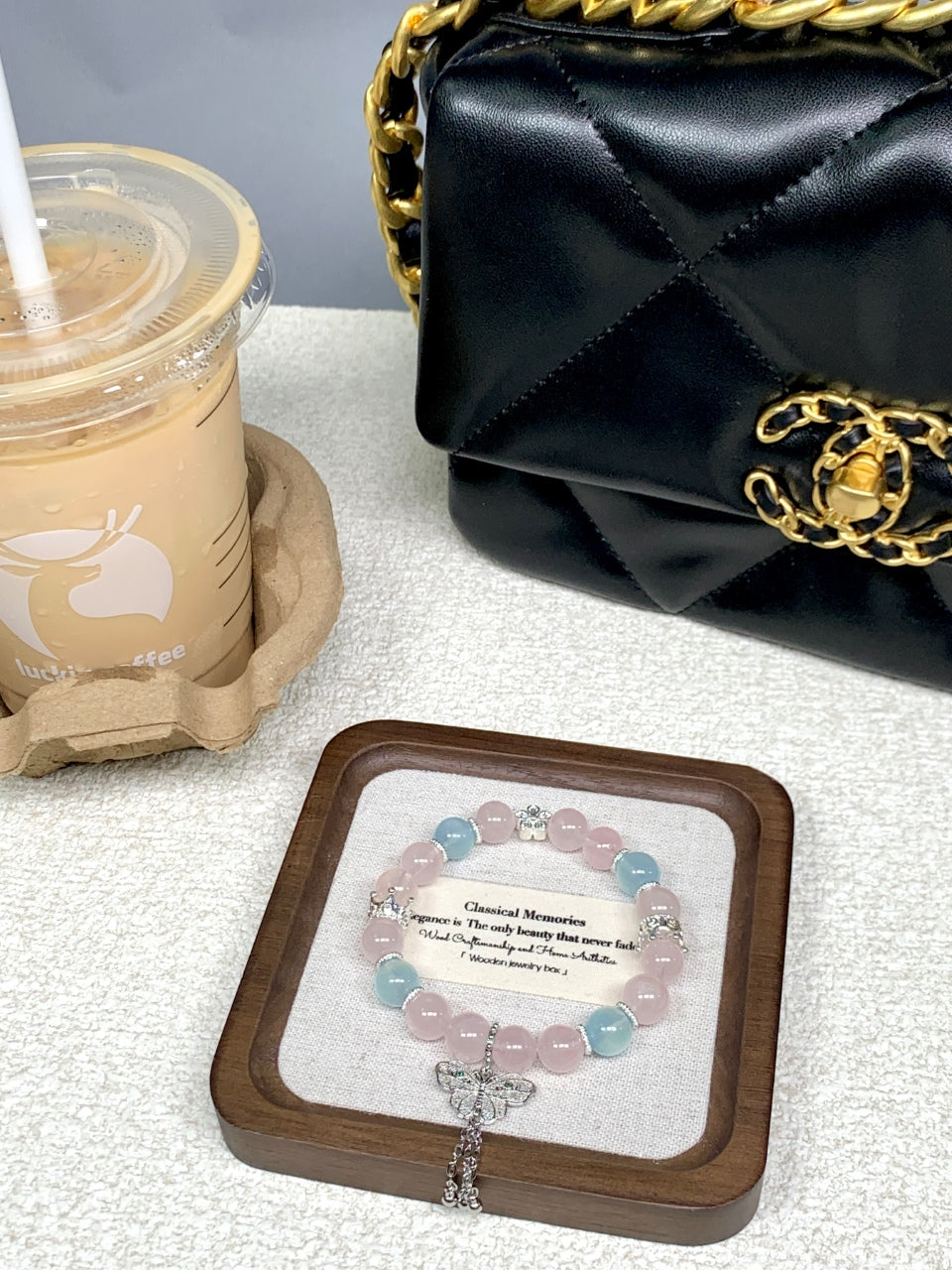 Composed of translucent Horse Pink and Santa Maria Aquamarine. Pink horse powder is like a shy girl, it can attract peach blossoms and moisturize the soul. Aquamarine is like the depth of the ocean, which can enhance communication skills and calm the mind. The combination of the two, supplemented by exquisite silver jewelry, is not only beautiful, but also gives the wearer a unique energy charm.