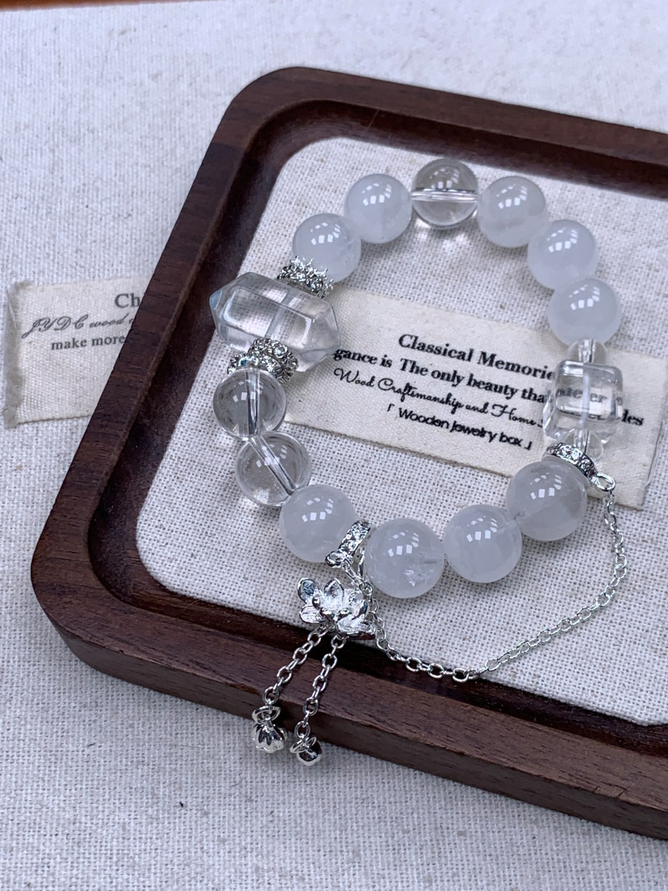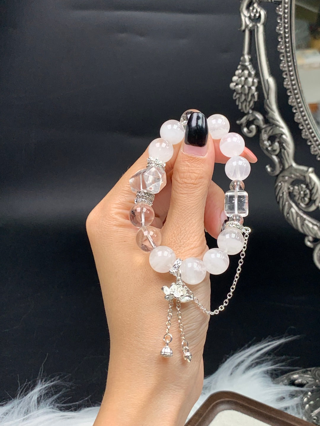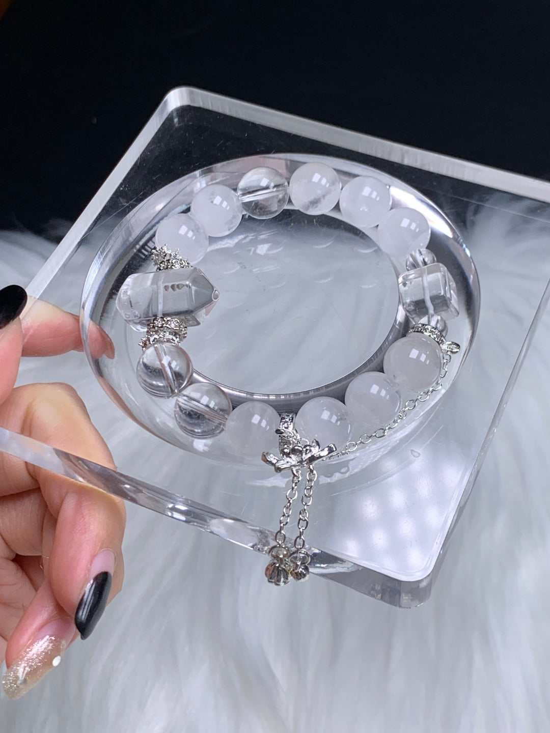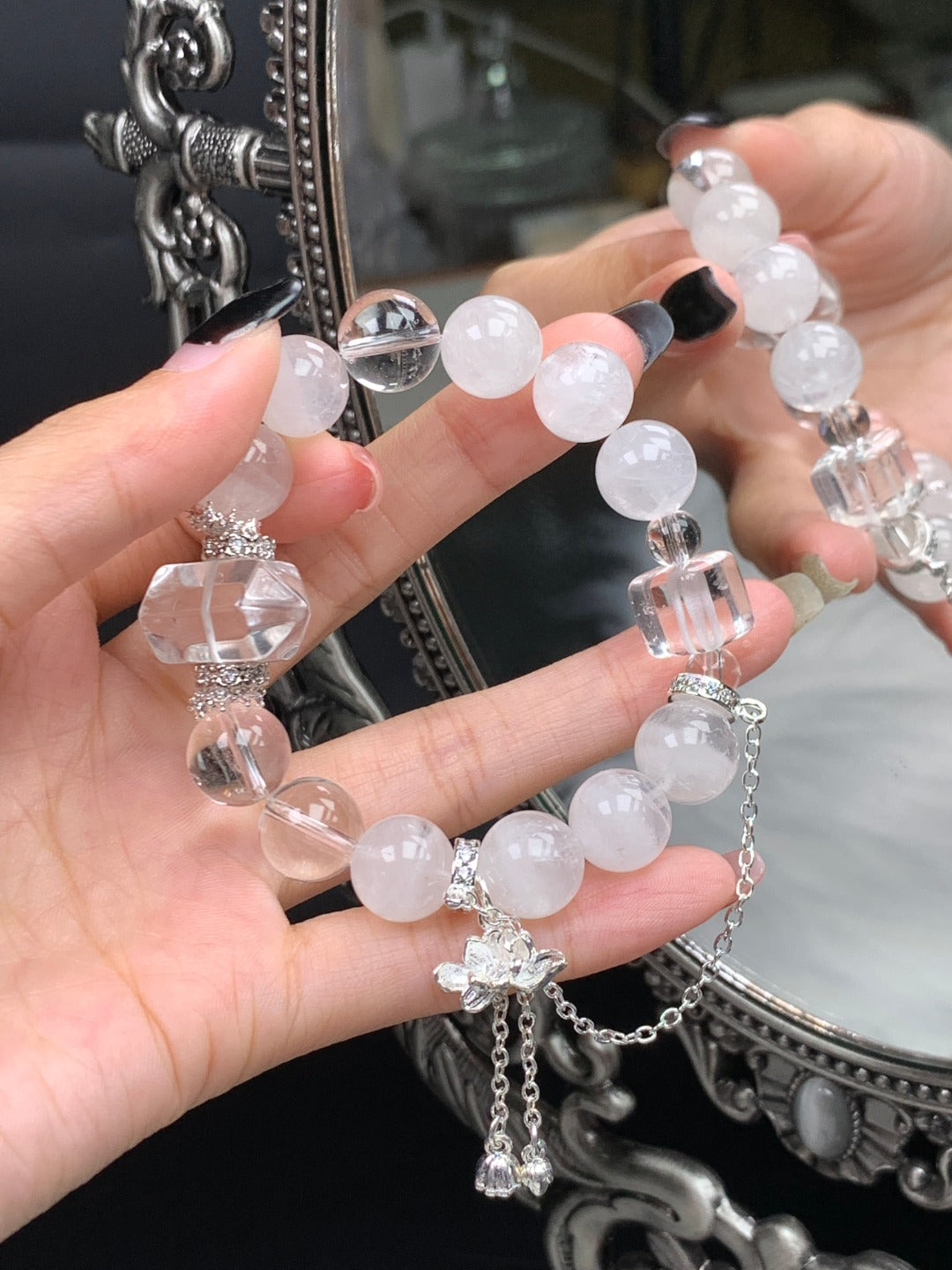 White crystal is pure and flawless, like a clear stream. It has powerful purifying power, which can wash away the dust in your soul and protect the purity of your heart. Thousand Layers of Ghost is mysterious and unpredictable, and its layers of texture seem to carry the power of precipitation and protection over the years. The white crystal sugar cubes are sweet and lovely, adding warmth to the purity. The white crystal facets shine brightly, like agile elves. This bracelet brings them together to show the beauty of pure souls, making you feel as if you are surrounded by pure and mysterious energy when wearing it, adding a unique temperament and attracting beauty and happiness.