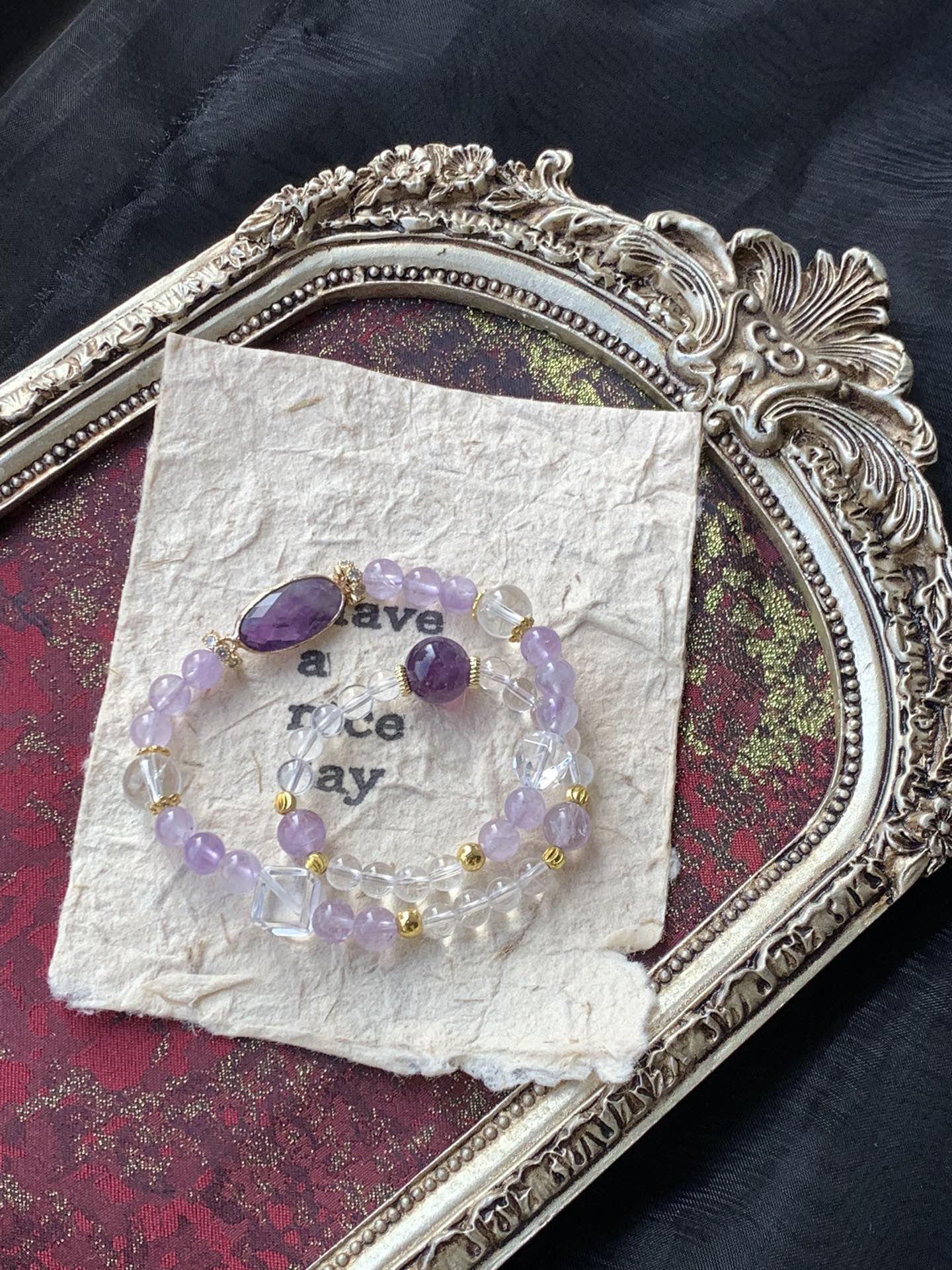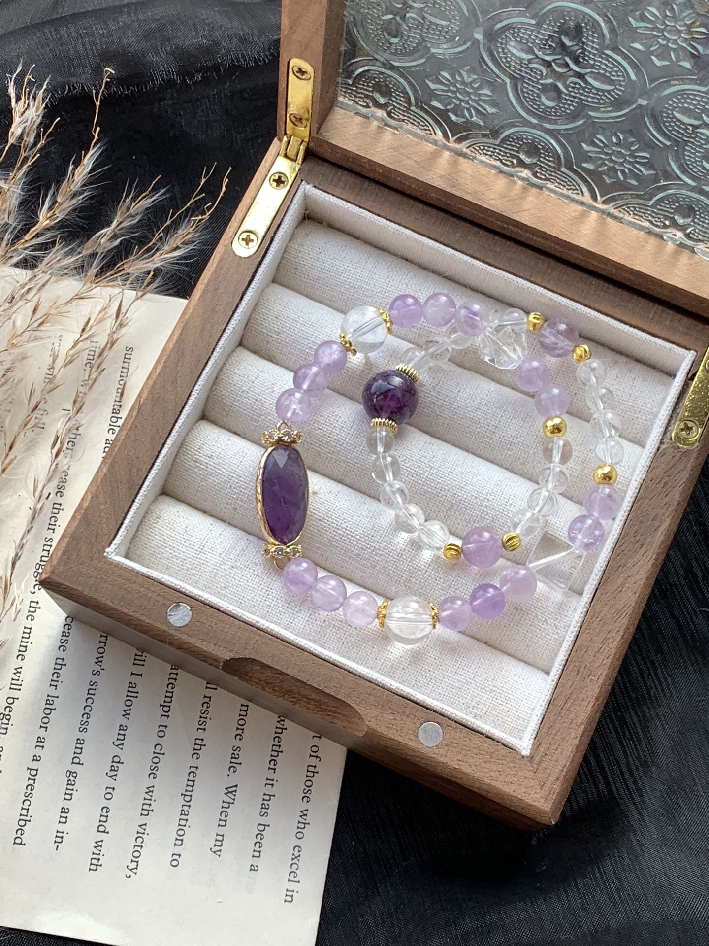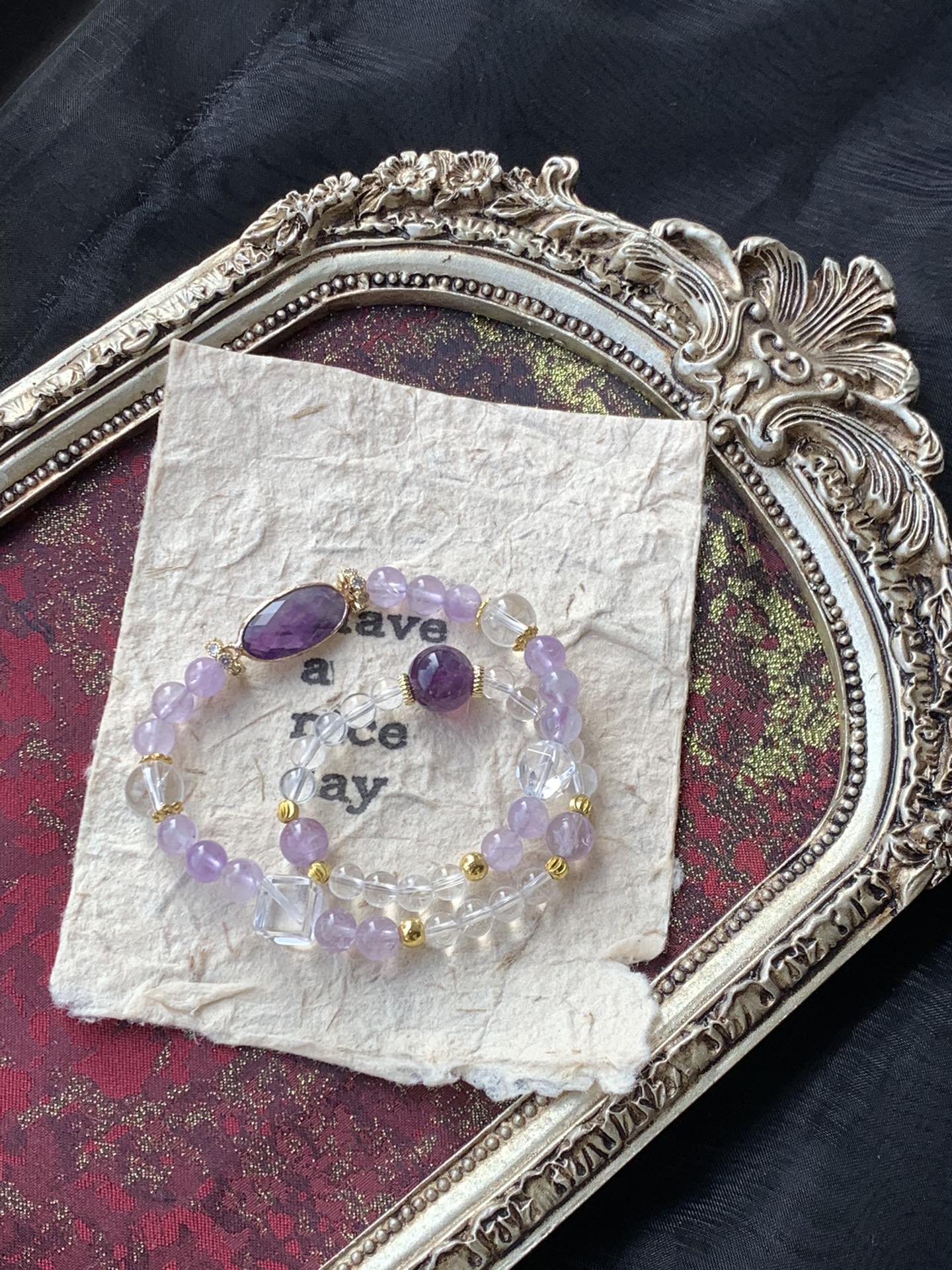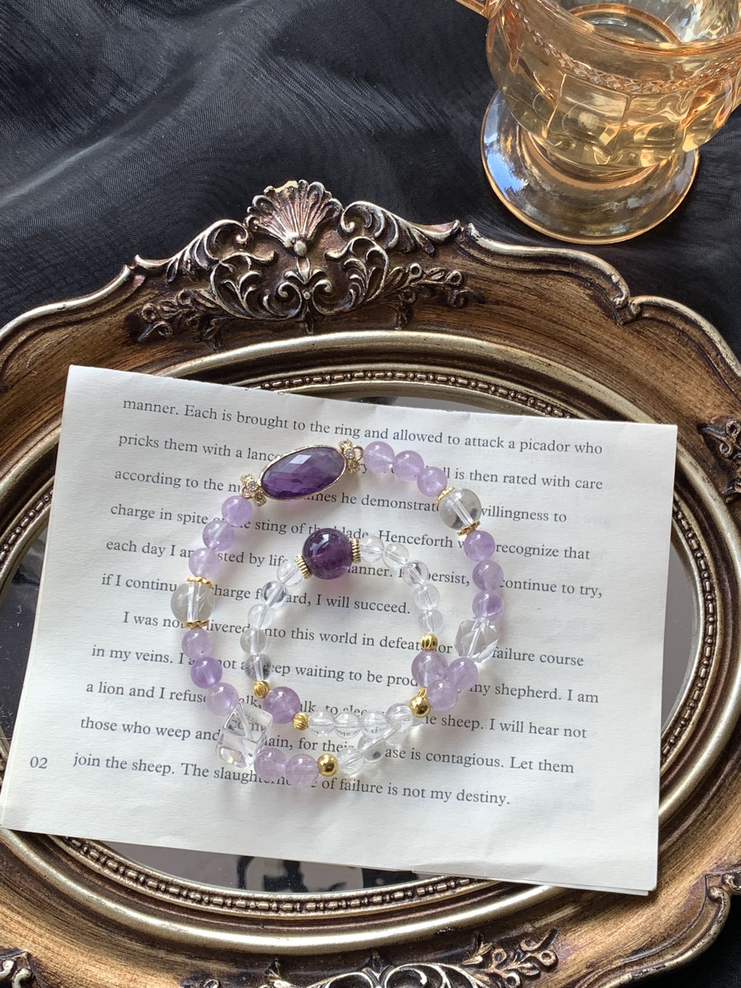 This Amethyst and Crystal Bead Bracelet combines beauty and functionality, featuring natural amethyst and clear crystal beads designed to enhance emotional balance and mental clarity. Amethyst is known for its ability to alleviate stress, boost intuition, and promote mental stability, while the crystal beads purify energy and foster inner harmony. The gold accents add a touch of luxury and elegance, making this bracelet a refined accessory perfect for daily wear.