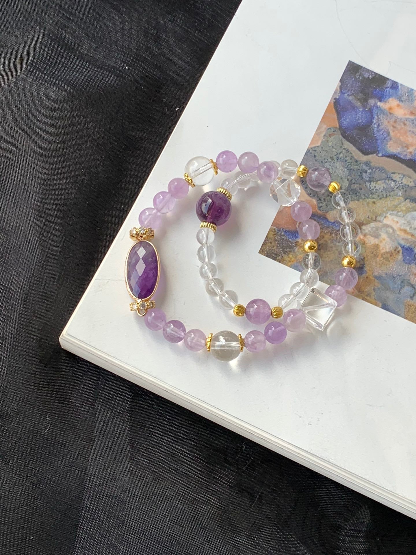 - Material: Natural Amethyst, Crystal Beads, Gold Accents